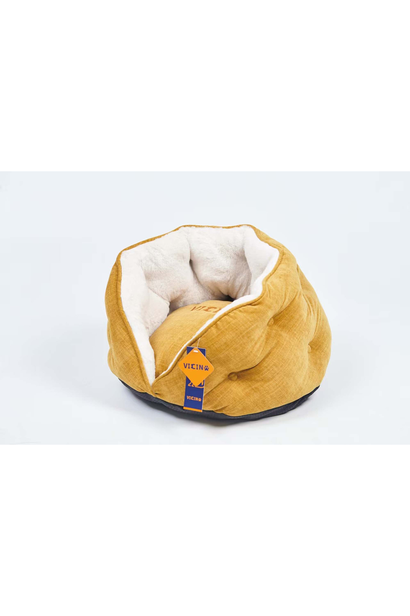 PUFFER Cat Bed features 100% chenille fabric with PP cotton filling. The faux rabbit fur lining and wraparound design offer a snug, hug-like comfort, while the double-sided cushion provides the ultimate security and warmth for newborn pets.